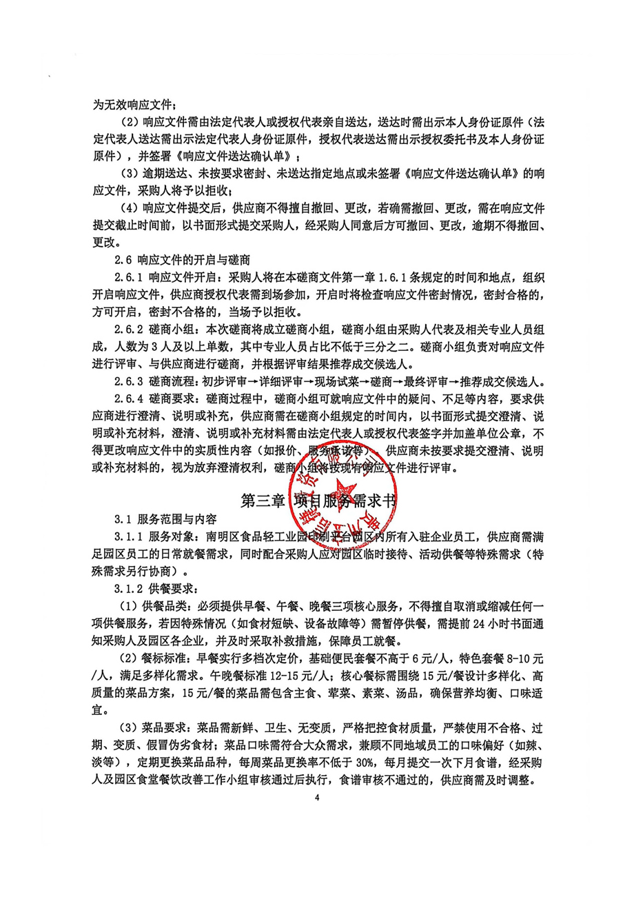 项目名称:南明区食品轻工业园印刷平台园区食堂餐饮服务运营项目