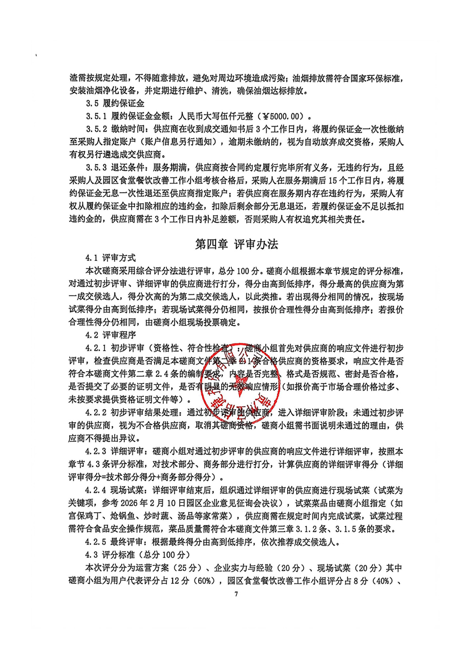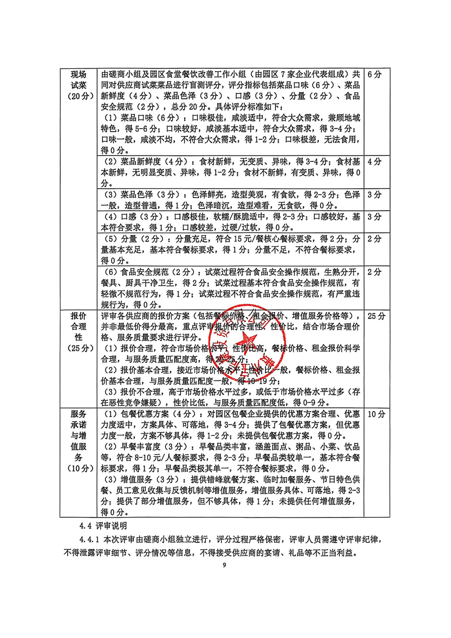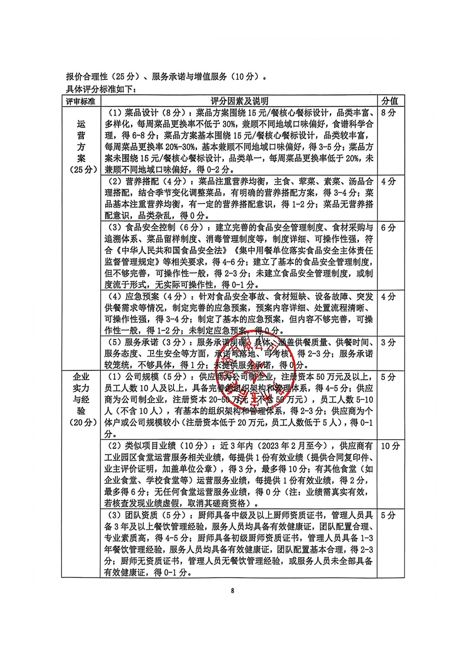 评审将采用综合评分法,重点评估运营方案、企业实力、现场试菜(关键项)、报价合理性及服务承诺。